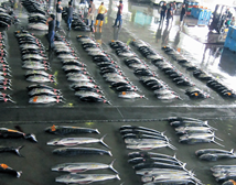 水揚げされます。特にカツオ、サンマ、サメ、メカジキなどは全国屈指の水揚げを誇ります。また、2階には長さ354mもの国内最大級の見学デッキが設けられており、活気ある市場の雰囲気を真上から見学することができます。